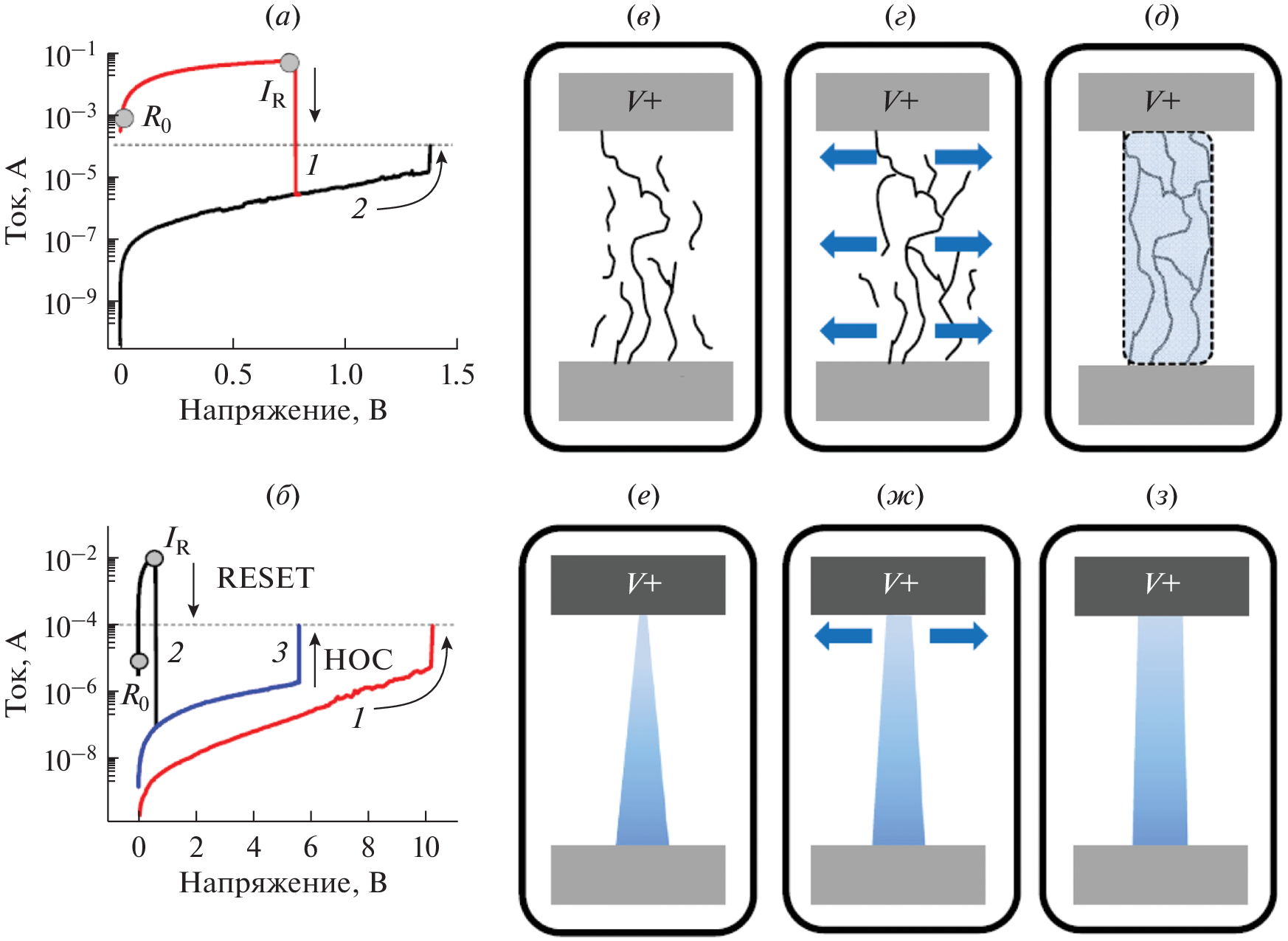 - Meng J., Zhao B., Xu Q., Goodwill J.M., Bain J.A., Skowronski M. Temperature overshoot as the cause of physical changes in resistive switching devices during electro-formation // J. Appl. Phys. 2020. V. 127. № 23. P. 235107.