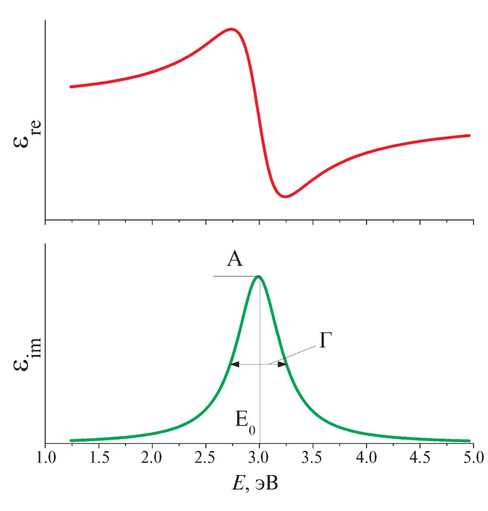 Здесь A − сила осциллятора; E0 − его центр; Γ − ширина (рис. 2).