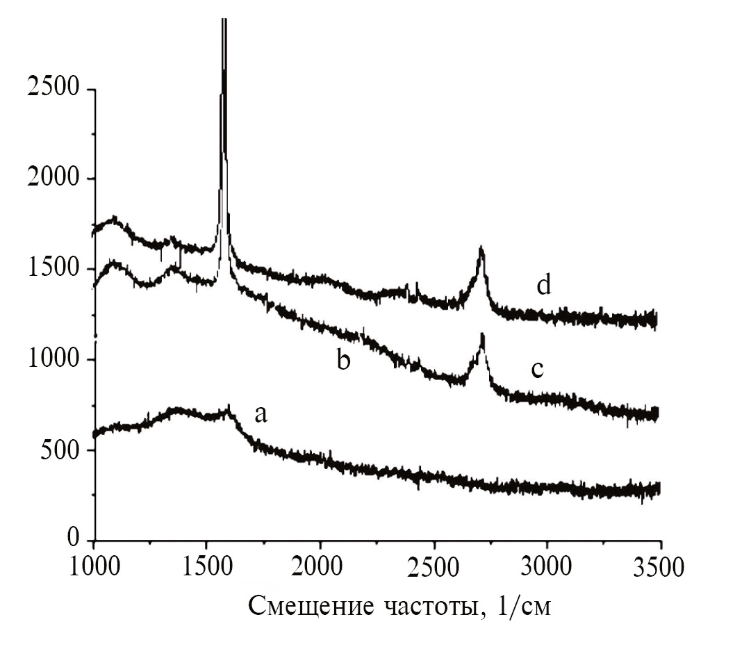 Рис. 1. Спектры комбинационного рассеяния на структуре Al2O3/ВОПГ.