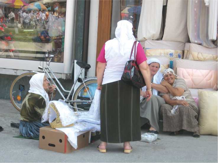 Я шью и продаю свадебную одежду. А шить могу любые костюмы. Наш дюкян специализируется на традиционных нарядах. Но я и сама вынуждена покупать – ведь не будешь ходить только в том, что сама производишь. Это неправильно, и другие заметят. Приходится покупать не из-за потребности, а чтобы соответствовать… Чему соответствовать? Не знаю, тому, что принято (АМАЭ 2008. Информантка – албанка Косово, около 50 лет, из г. Приштина, швея и вышивальщица; беседа записана в августе 2008 г.).