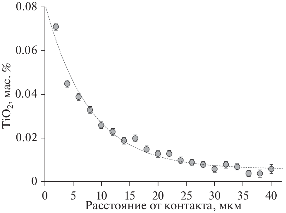 Microprobe study of the effects of secondary fluorescence from high-titania glass (TiO2 ≈ 16 wt %) on apparent titanium content in Ti-free zircon was conducted. It was demonstrated that small crystals (<10 µm) are not suitable for analysis. In boundary parts of large zircon crystals (20–30 µm) the error in Ti estimation may reach 10–23%. However, in central parts of large crystals (> 30 µm) the microprobe analysis gives practically undistorted titanium contents.
