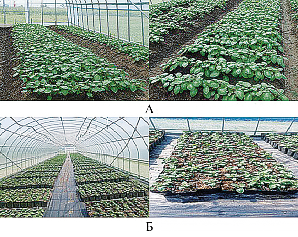 В настоящее время получения исходных оздоровленных мини-клубней достигается различными лабораторными способами (аэропонные, гидропонные, аэро-гидропонные) или в условиях защищенного грунта [7, 8]. Производства мини-клубней в весенне-летних сооружениях защищенного грунта, по оценкам экспертов, составляет около 80% в сравнении с альтернативными технологиями с применением гидропонных или аэропонных модулей [9]. Тепличная технология является простым и доступным способом получения мини-клубней. Клубни, произведенные таким способом, более полноценные и физиологически качественные. Однако при этом существенным недостатком является достаточно невысокий количественный выход мини-клубней с единицы площади [10].