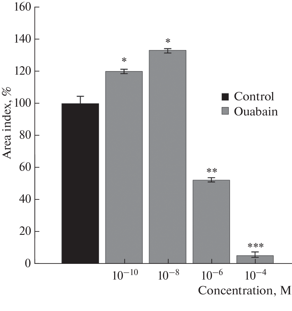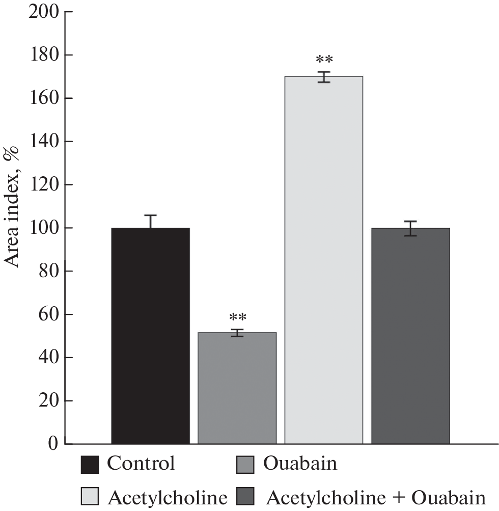 В последнее время все большее внимание уделяется обсуждению трофической функции нервной системы и ее участию в запуске сигнальных каскадов, регулирующих клеточный метаболизм. В работе оценивали роль ацетилхолина и Na+,K+-АТФазы в регуляции роста скелетных мышц 10–12-дневных куриных эмбрионов в условиях органотипической культуры ткани. Максимальный трофотропный эффект ацетилхолин проявлял в концентрации 10–8 М. Ингибиторный анализ доказал участие никотиновых холинорецепторов в этом эффекте. Оуабаин дозозависимо регулировал рост эксплантатов ткани скелетной мышцы куриных эмбрионов. В концентрациях, сопоставимых с эндогенными, гликозид стимулировал рост экспериментальных эксплантатов на 33% по сравнению с контрольным значением. Обнаружены миотоксические свойства оуабаина в диапазоне концентраций 10–6–10–4 М. Ацетилхолин устранял миотоксический эффект оуабаина (10–6 М) как прямо, действуя на Na+,K+-АТФазу, так и рецептор-опосредовано через никотиновый холинорецептор.