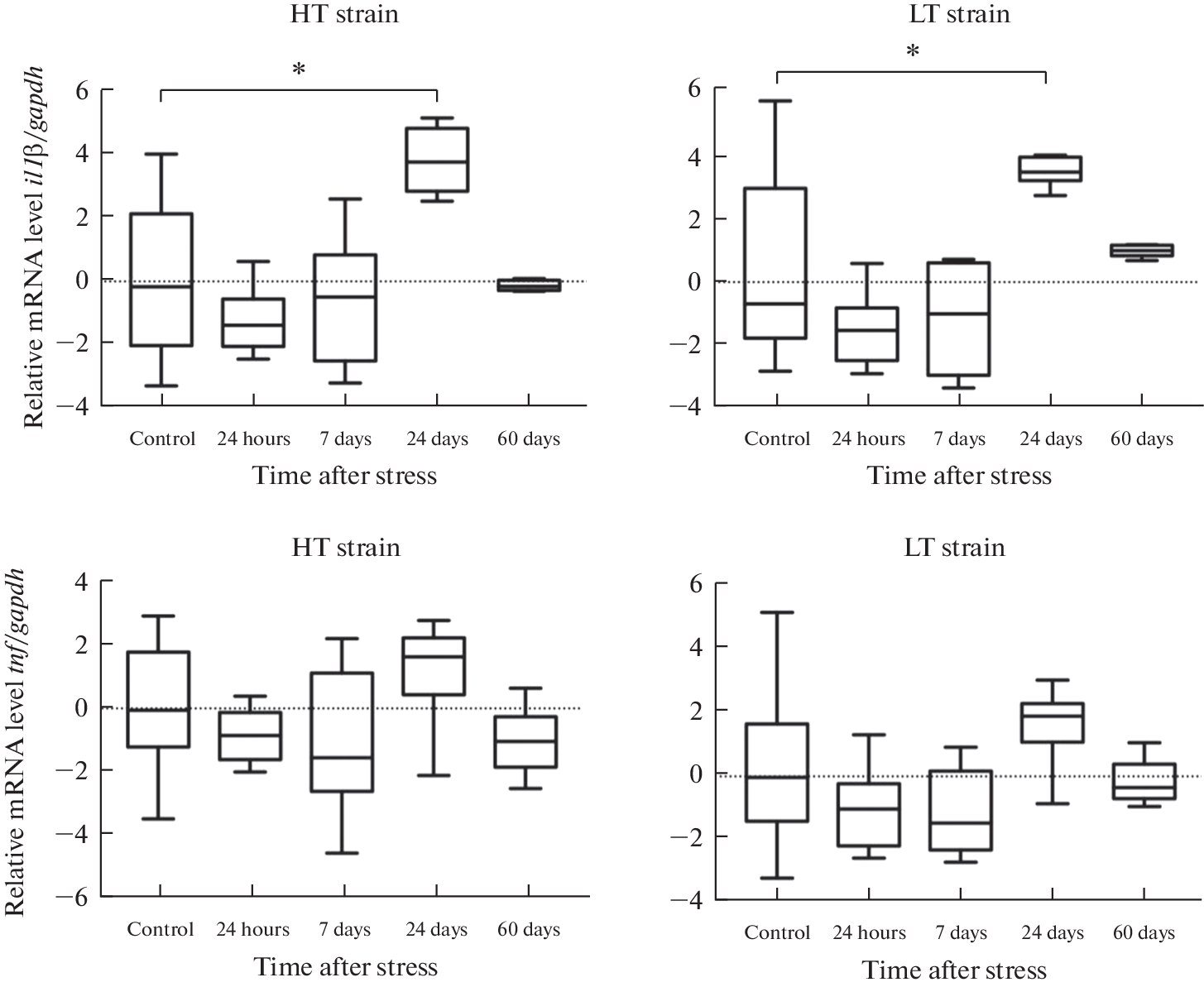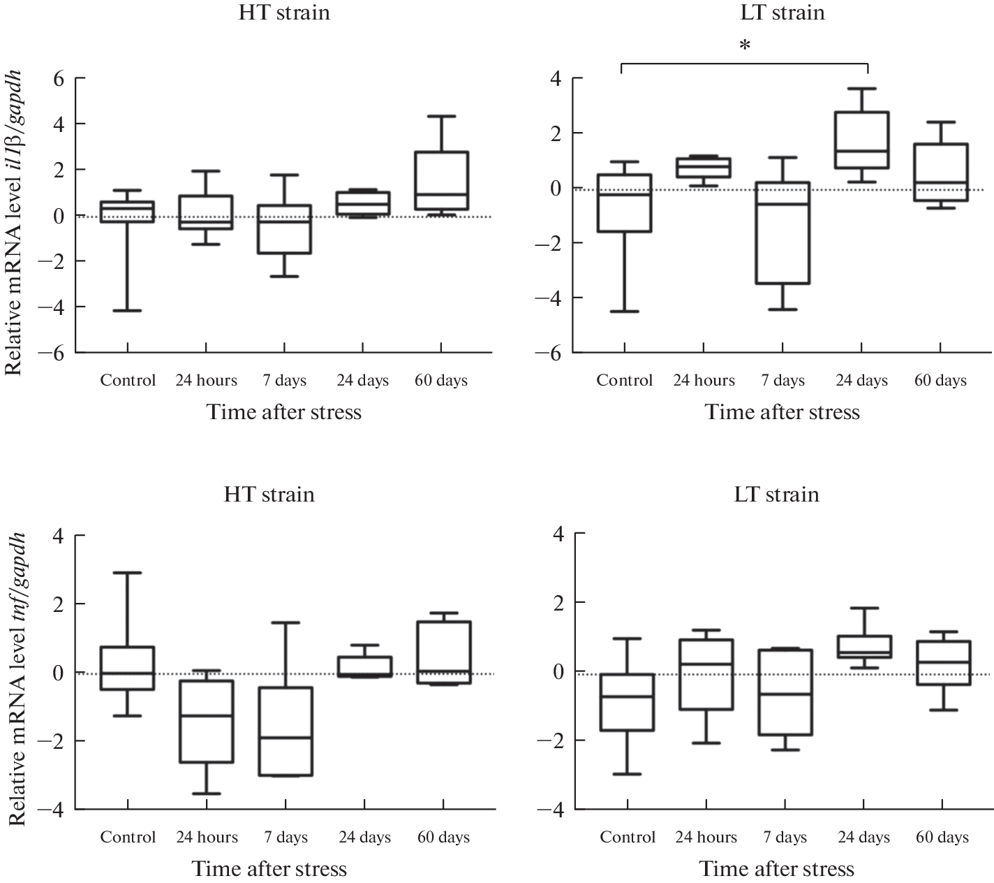 - Shalaginova IG, Tuchina OP, Sidorova MV, Levina AS, Khlebaeva DA, Vaido AI, Dyuzhikova NA (2021) Effects of psychogenic stress on some peripheral and central inflammatory markers in rats with the different level of excitability of the nervous system. PloS One 16(7):e0255380. https://doi.org/10.1371/journal.pone.0255380