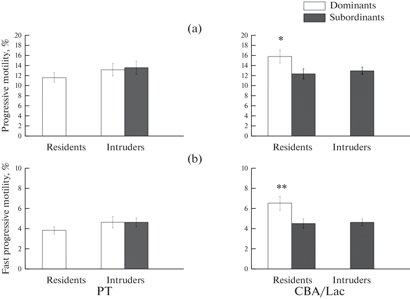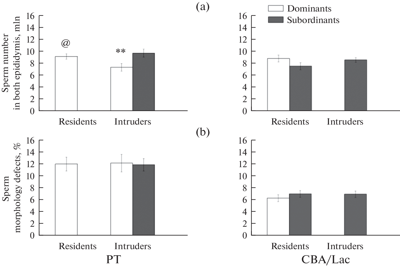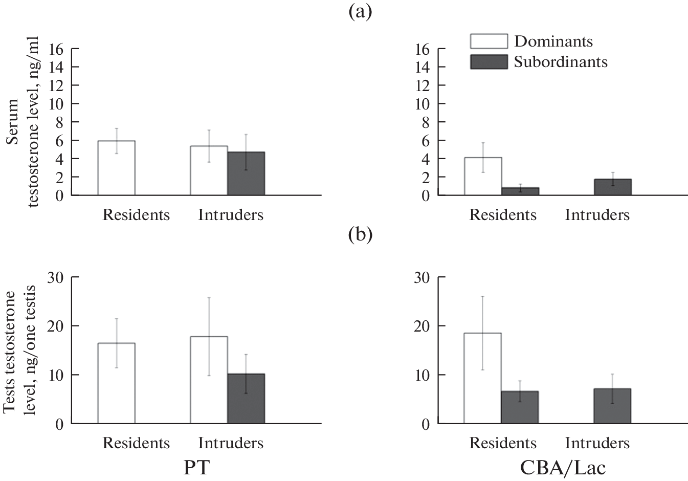 Влияние формирования доминантно-субординантых отношений в модели резидент–интрудер на тестикулярную функцию у лабораторных мышей инбредных линий PT и CBA/Lac