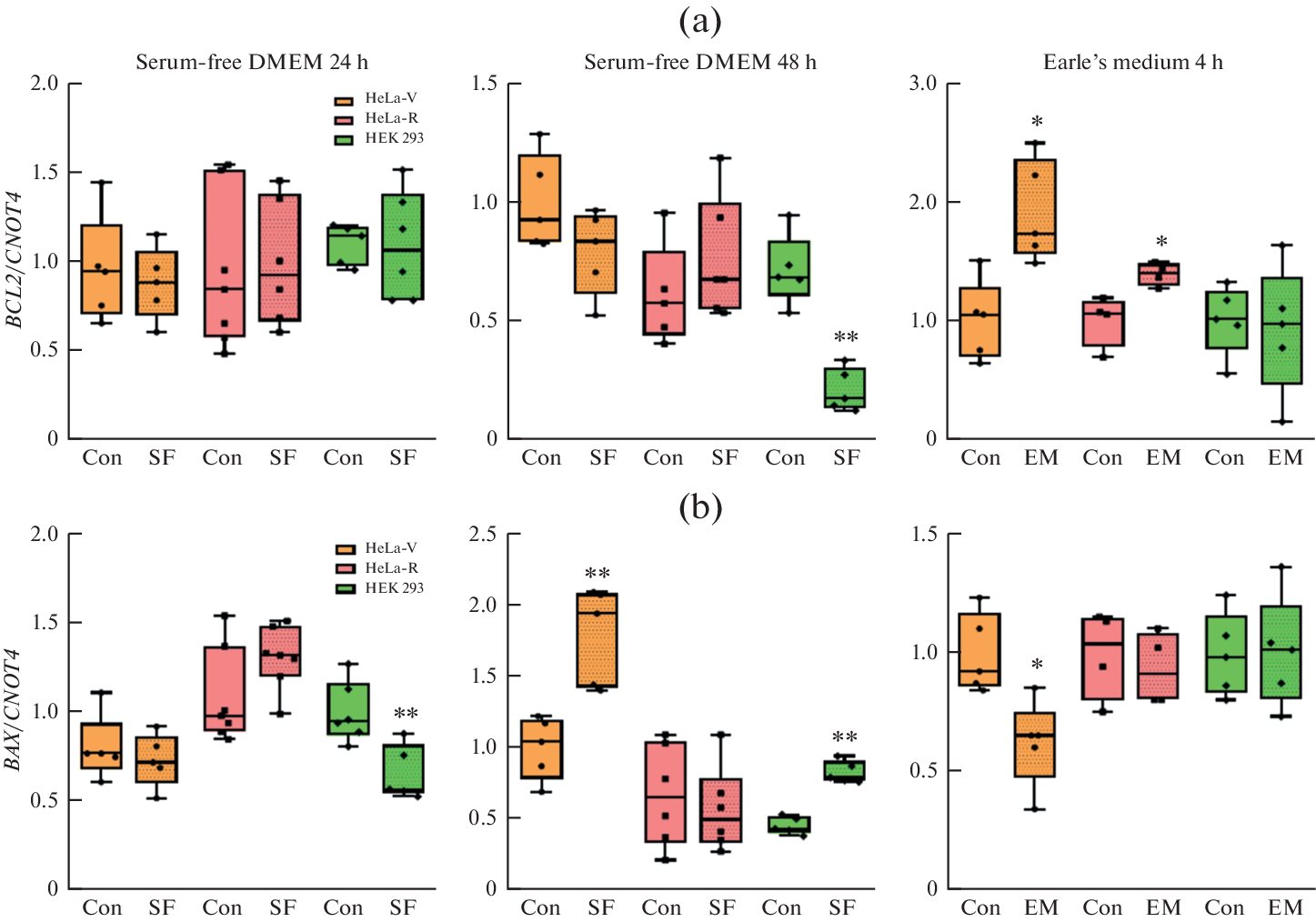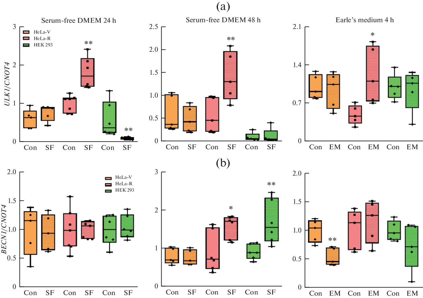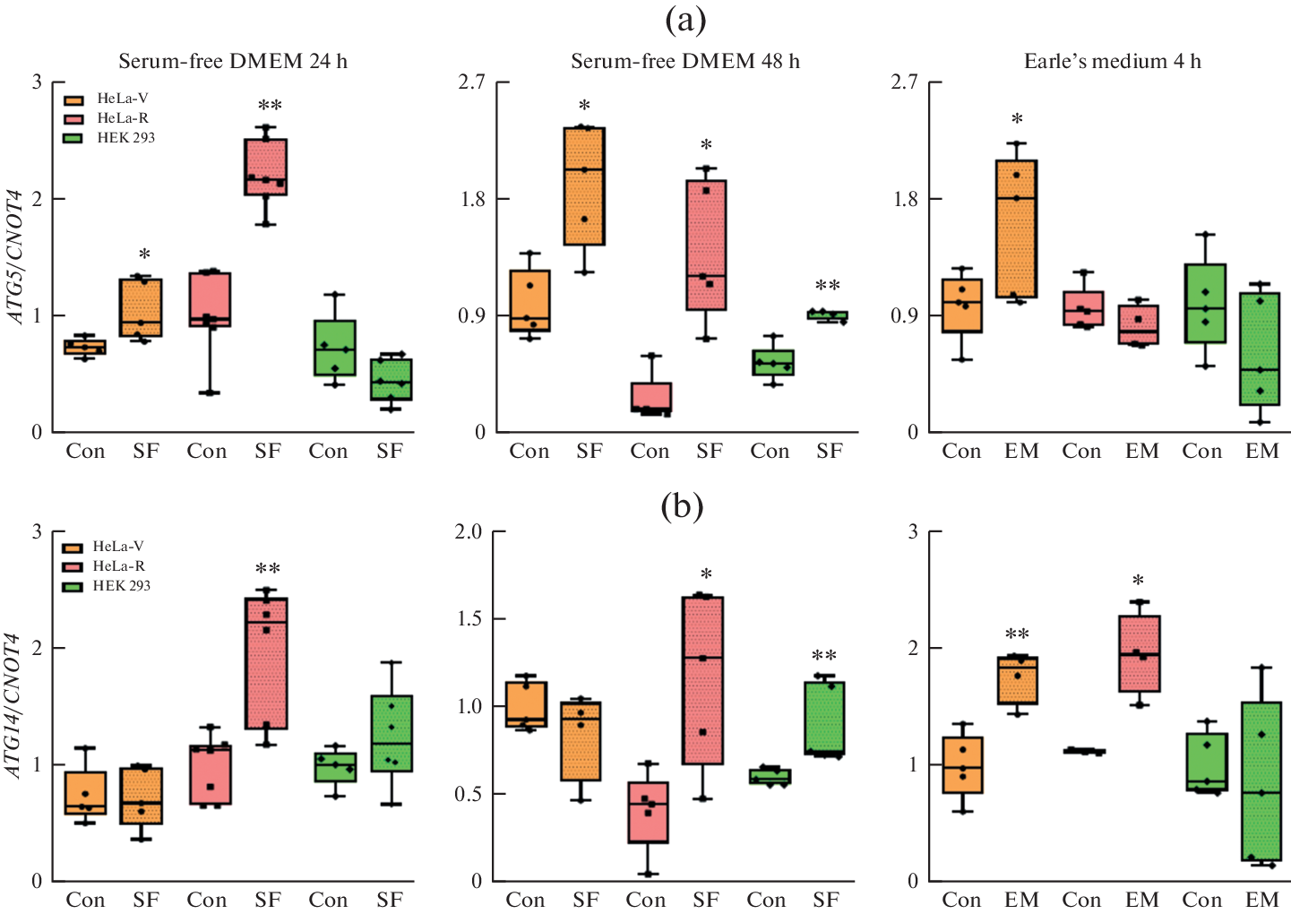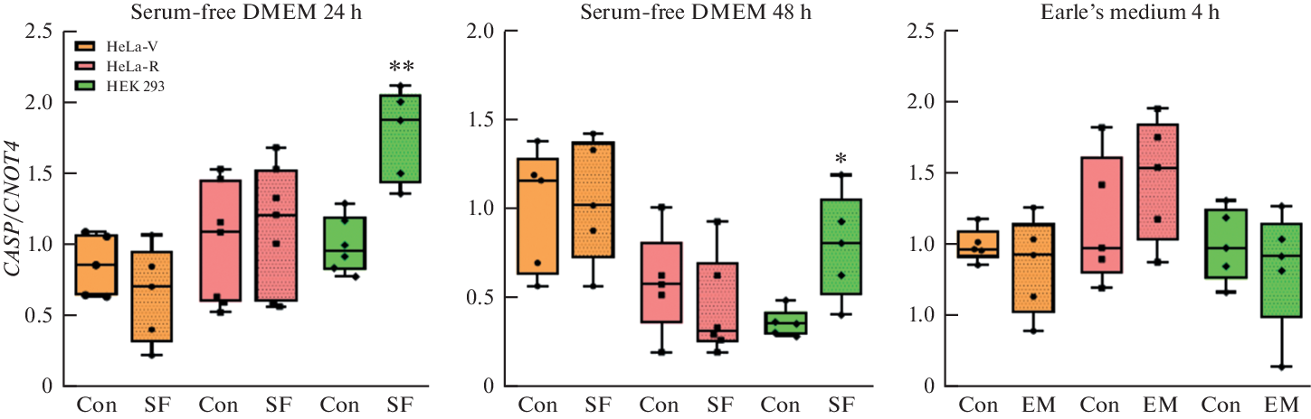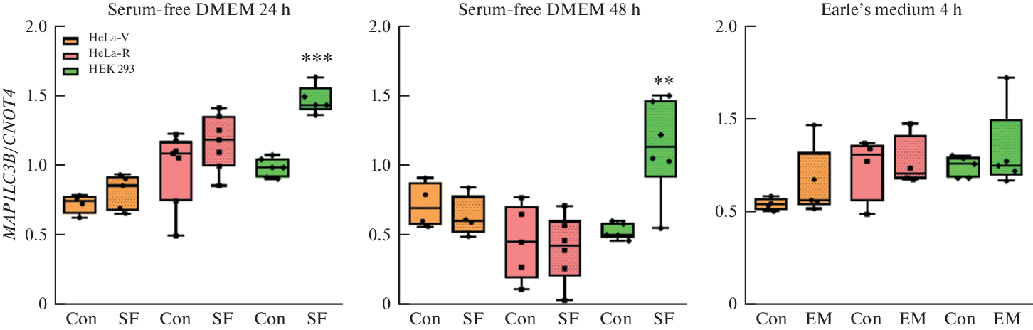 Экспрессия генов апоптоза и аутофагии в клетках HeLa и HEK 293 в условиях недостатка питательных веществ