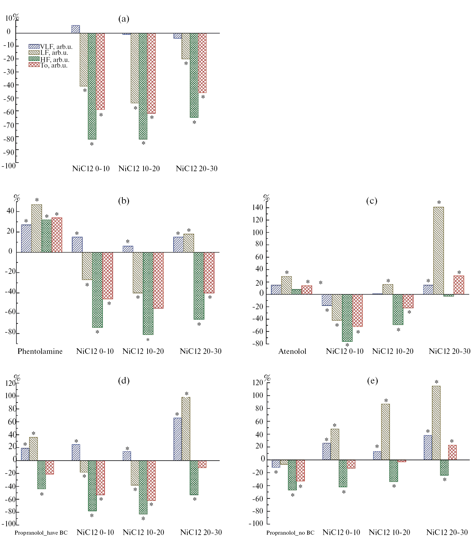 VLF, % | 20.1 ± 2.8 | 50.4 ± 2.4* | 51.3 ± 2.1* | 35.3 ± 5.5* |
