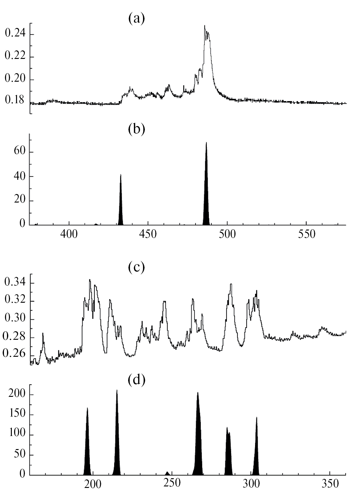 Рис. 5. Синхронизация брадикардических комплексов сердечного ритма (a) у 3-дневного крысенка со вспышками моторной активности (b) в фоне и после инъекции кленбутерола в дозе 90 мг/кг (c, d). По оси абсцисс – время в секундах, по оси ординат на (a), (с) – длительность RR-интервалов (секунды); на b, d – мощность ЭМГ (В2•с).