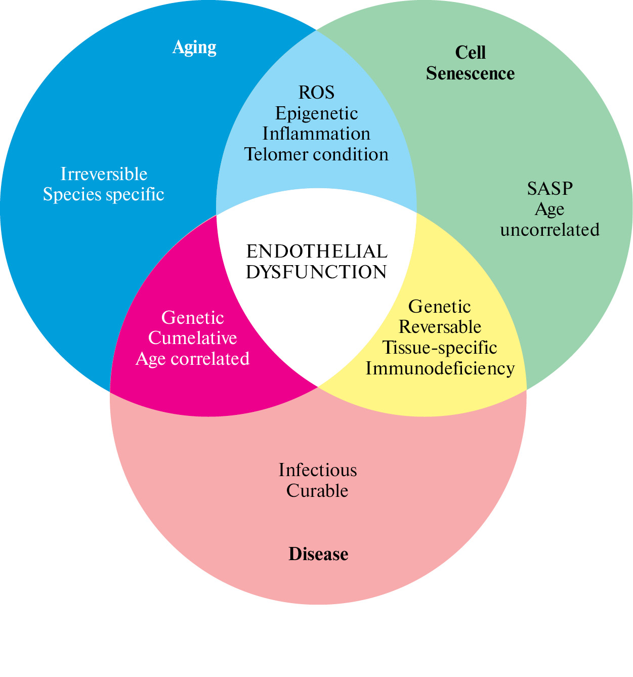 Старение организма неразрывно связано с эндотелиальной дисфункцией и развитием сосудистых заболеваний. Однако возраст как таковой является лишь одним из факторов старения сосудов. Активные формы кислорода (АФК) играют важную роль в механизмах старения и гибели эндотелиальных клеток (ЭК). Старение ЭК может быть сопряжено с эндотелиальным перепрограммированием, когда клетки приобретают иммунологический фенотип или трансформируются в миофибробласты (эндотелиально-иммунный или эндотелиально-мезенхимальный переход соответственно). Атеросклероз – одно из наиболее известных заболеваний сосудов, которое инициирует другие, более тяжелые заболевания. Механизмы развития атеросклероза связаны не только с повышенным уровнем “плохого” холестерина, но также с десиалированием липопротеидов и эндотелия. Множество факторов, связанных с наследственностью, образом жизни, частотой и интенсивностью инфекционных заболеваний, обусловливают повреждение ЭК и раннее старение сосудов, что приводит к ускоренному старению организма, нарушению когнитивных функций, развитию нейродегенеративных заболеваний. В обзоре освещены некоторые из этих процессов, их хронологическая и функциональная взаимосвязь.