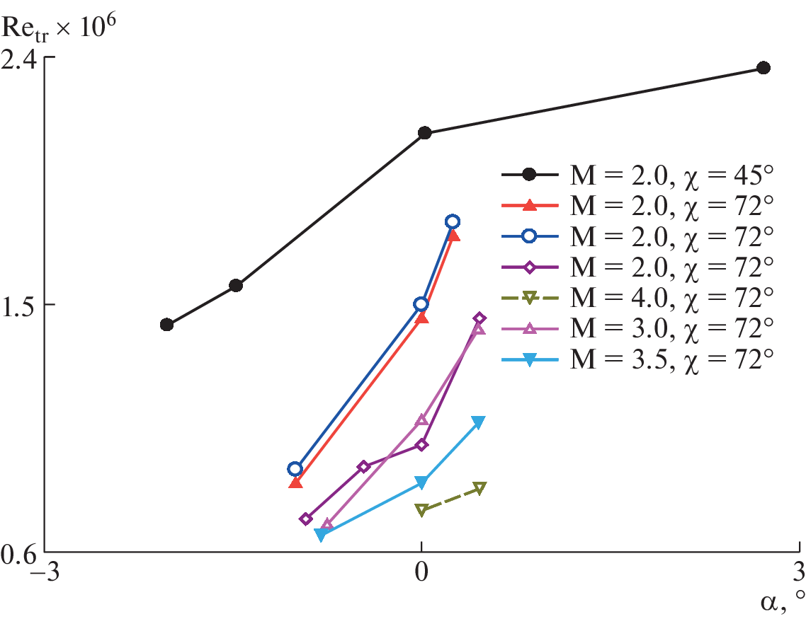 - Semionov N.V., Yermolaev Yu.G., Kocharin V.L., Kosinov A.D., Semenov A.N., Smorodsky B.V., Yatskikh A.A. An effect of small angle of attack on disturbances evolution in swept wing boundary layer at Mach number M = 2 // AIP Conf. Proc. 2018. V. 2027. № 1. P. 030156. https://doi.org/10.1063/1.5065250
