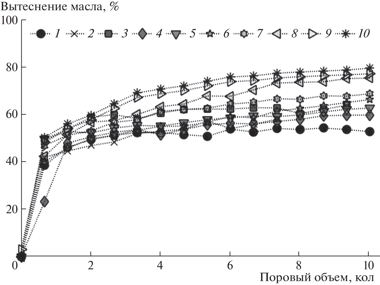 - Hendraningrat L., Zhang J. Polymeric nanospheres as a displacement fluid in enhanced oil recovery // Appl. Nanosci. 2015. V. 5. № 8. P. 1009–1016.
