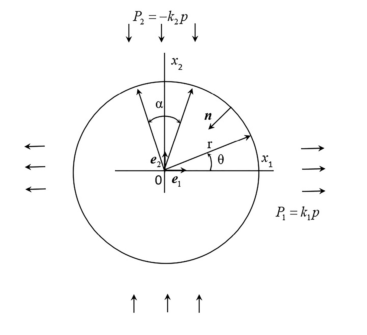- Постановка задачи. Рассматривается комбинированное нагружение линейно упругой среды с круговым отверстием согласно схеме рис. 1.