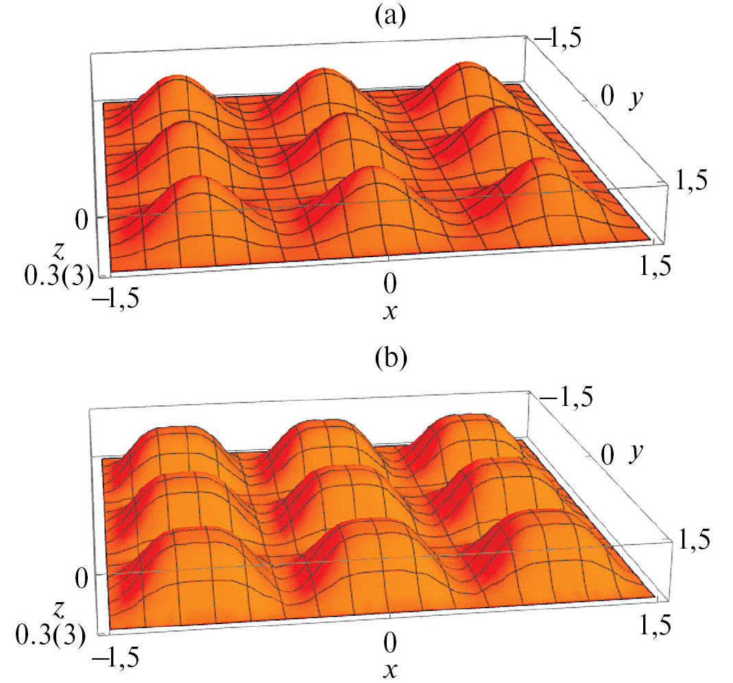 Рис. 1. Модель периодической поверхности n = 2 (a), n = 4 (b), A/L = 1/3.