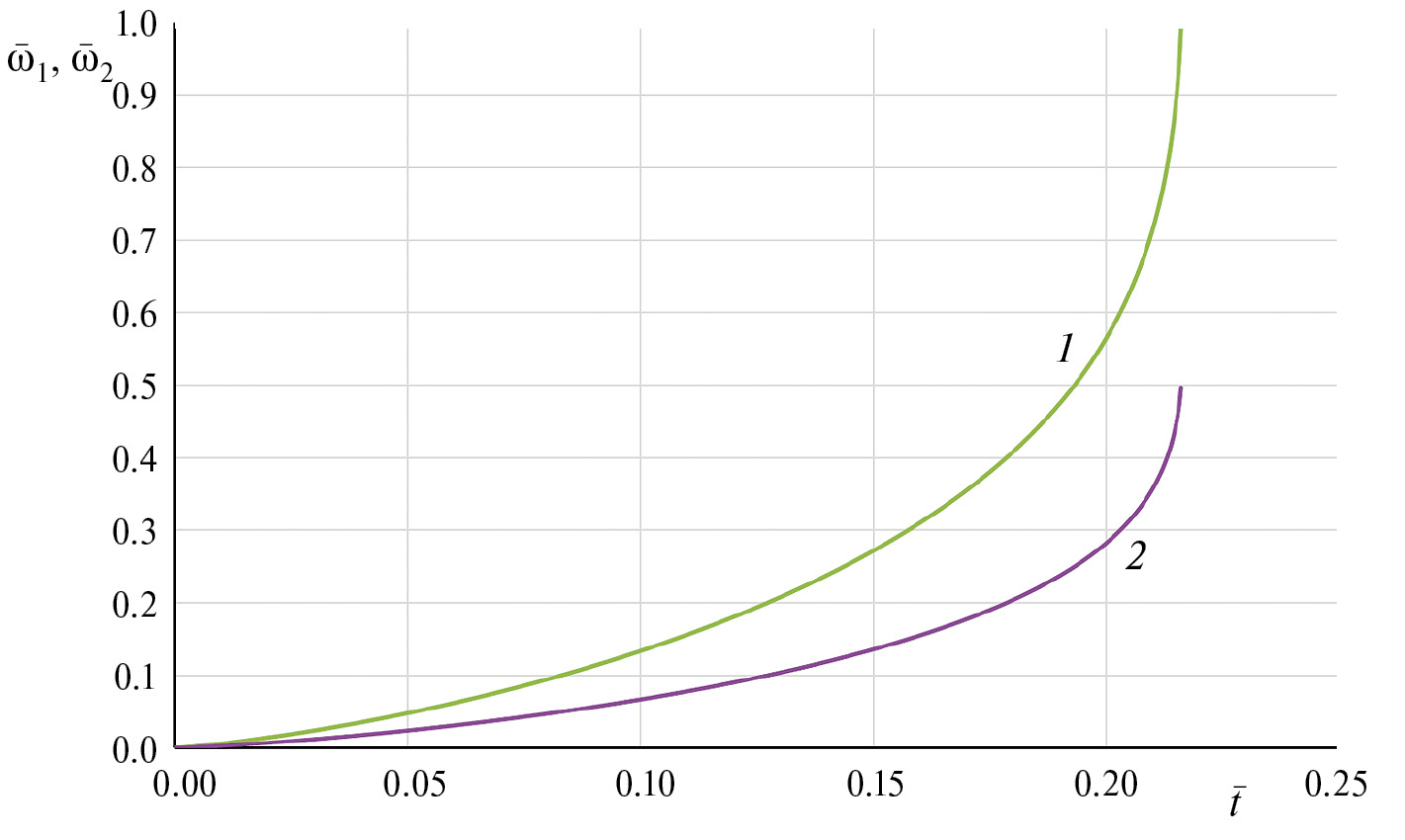 Результатом решения задачи будут являться рассчитанные зависимости 1 = 1(), 2 = 2( ), 1 =1(), w2 =2() от безразмерного времени .