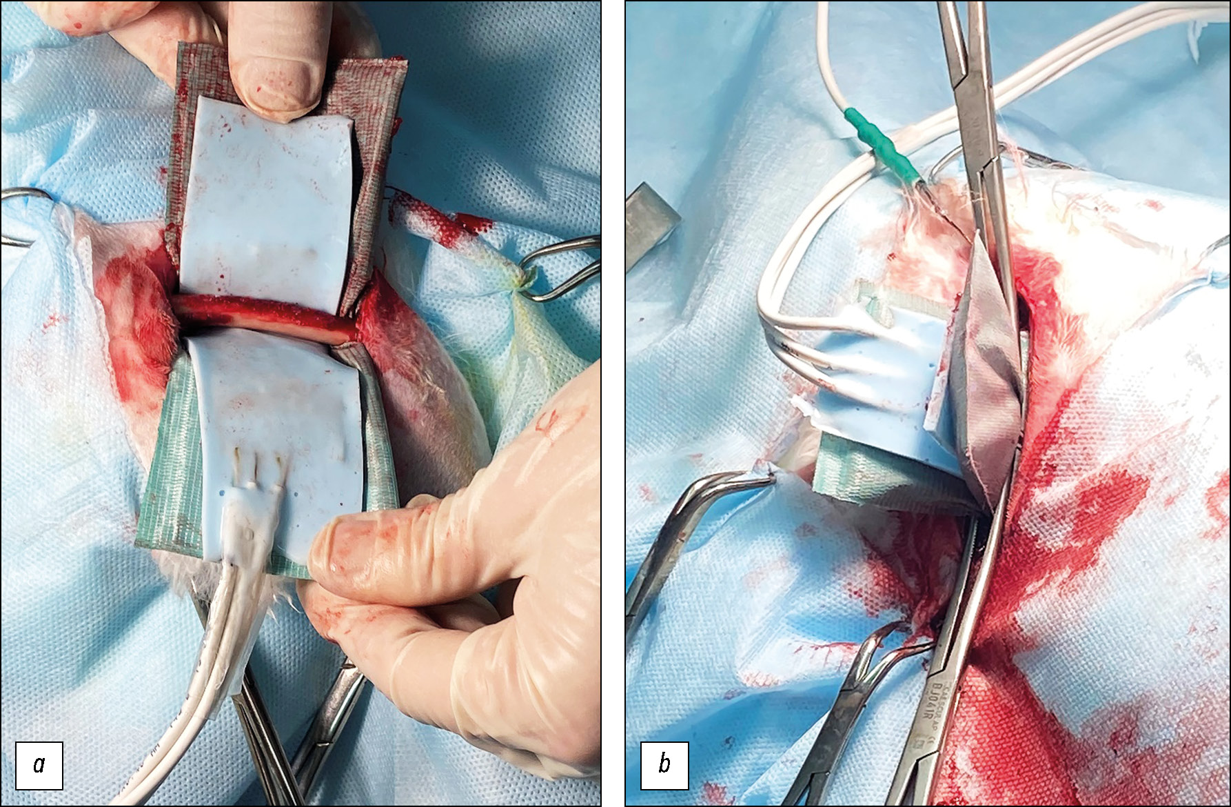 Inclusion criteria. The study used 6 outbred rabbits aged 15 weeks and weighing 3–4 kg. Prior to the experiment, the animals underwent a 7-day quarantine in ambient conditions.1 After quarantine, the rabbits were randomly assigned to two study groups, with three rabbits in each group.