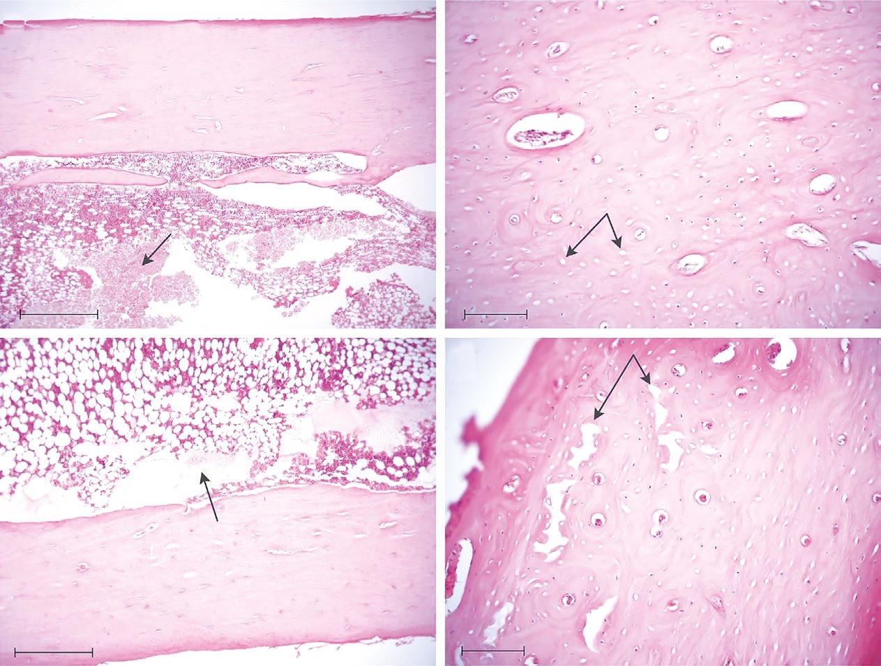 Histological preparations of the bones were examined using an Axioscope 40 light microscope (Zeiss, Germany). Digital photomicrographs were captured under standardized lighting conditions using a Canon PowerShot A2200 camera (14.1 MP, Canon Inc., China) and processed with AxioVision 4.8 software (Zeiss, Germany).