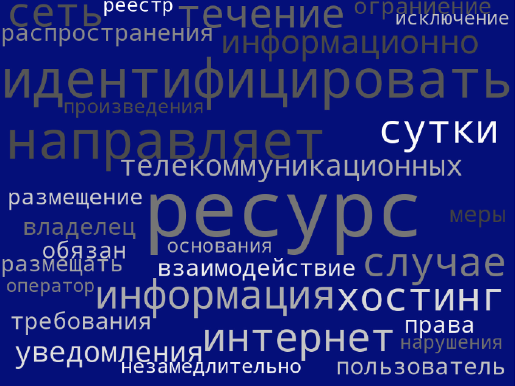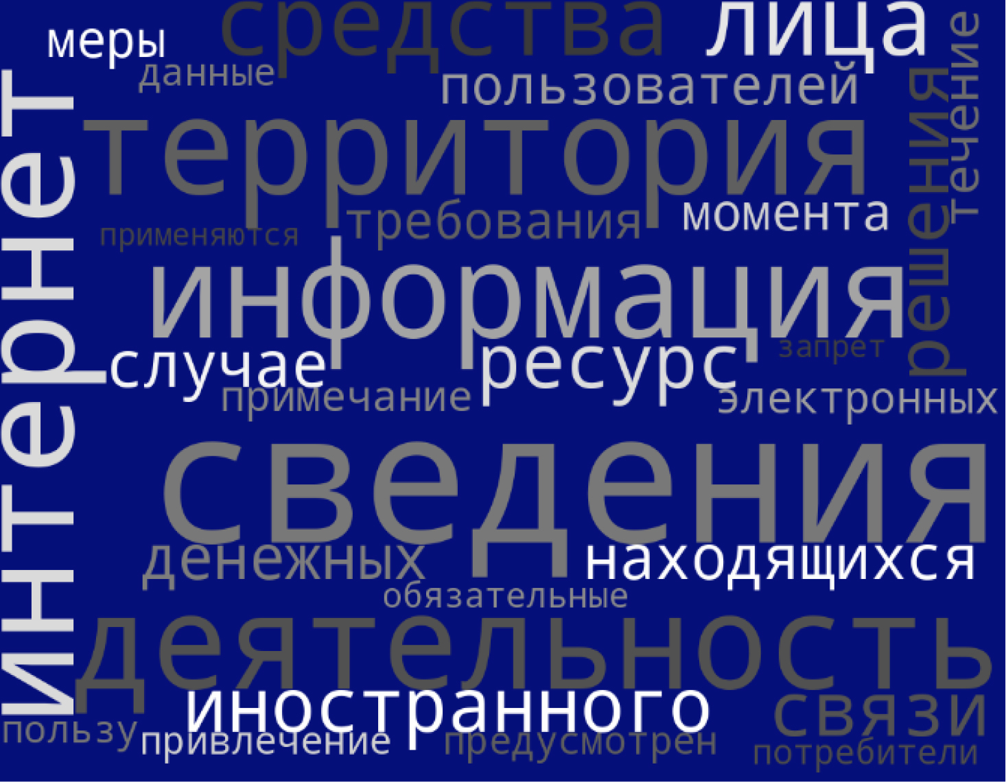 Рис. 3. Частотный анализ наиболее часто встречающихся слов (без предлогов) в Федеральном законе «О деятельности иностранных лиц в информационно-телекоммуникационной сети “Интернет” на территории Российской Федерации»