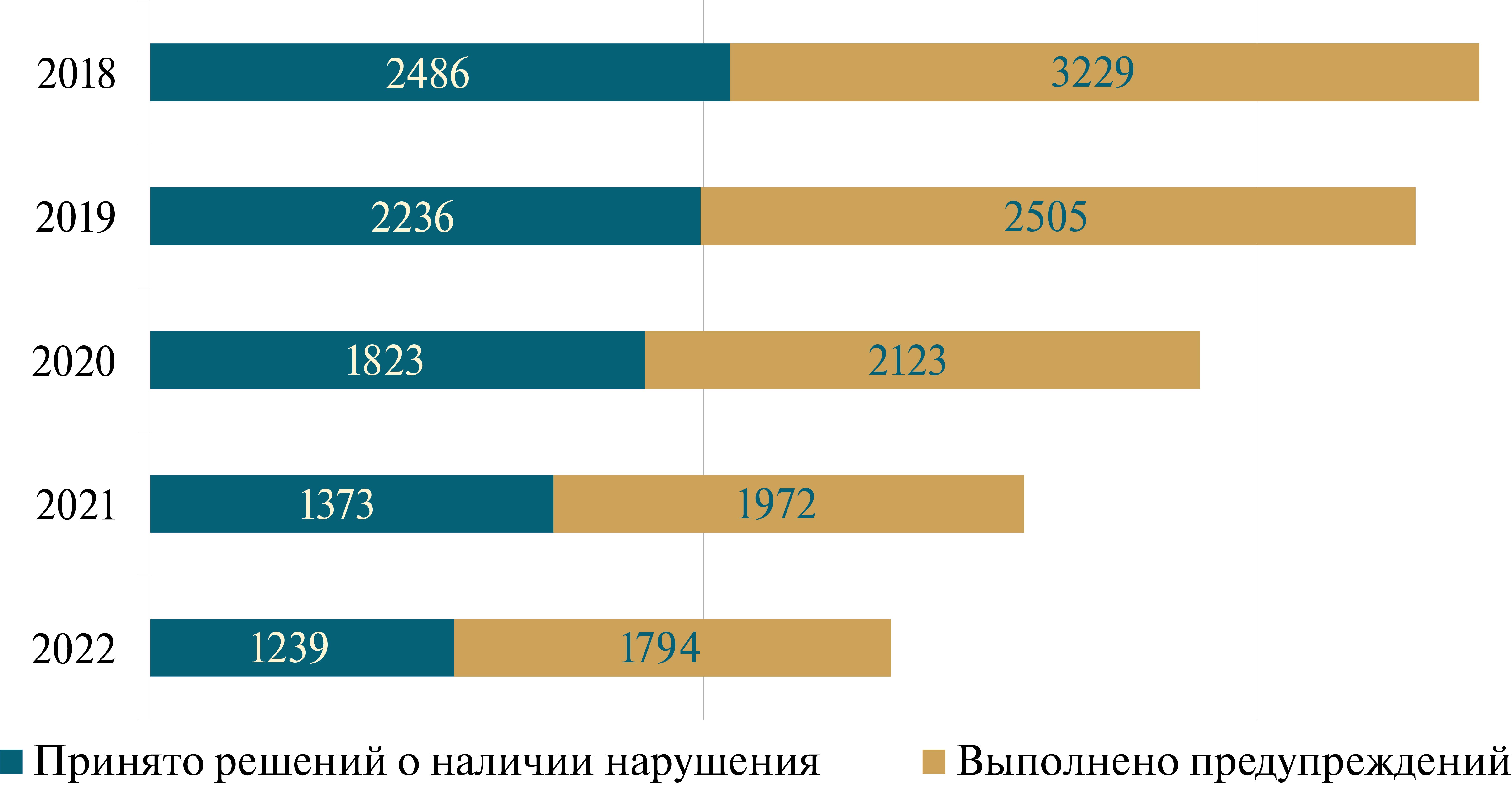 10 Здесь и далее все статистические данные предоставлены ФАС России (см.: Доклад ФАС России о состоянии конкуренции в Российской Федерации за 2022 год).