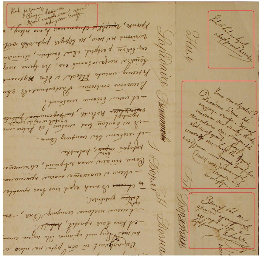 Ср. на соседнем листе чернового автографа (на Илл. 5 интересующие нас записи выделены красным цветом):