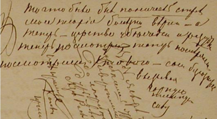 Другой набросок на этом же листе и текст чернового автографа на соседнем листе указывают на то, что в Раскольникове гордыня борется с осознанием пути к воскресению (то же и в окончательном тексте романа, где Раскольников объясняет свое состояние после убийства болезнью):
