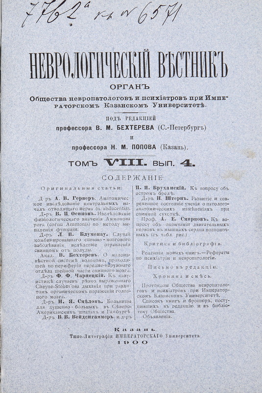 Лѣтопись общества невропатологовъ іи психіатровъ при Императорскомъ Казанскомъ Университете. Протоколъ засѣданія Общества 30 апрѣля