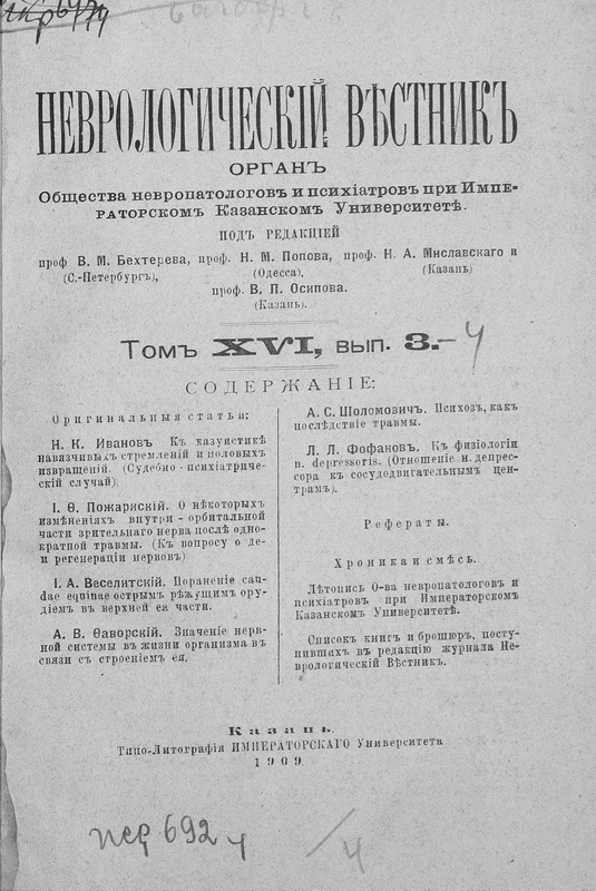 А В. Ильгинъ. О процессахъ сосредоточенія (вниманія) у слабоумныхъ душевнобольныхъ. Экспериментально-психологическое изслѣдованіе душевно-больныхъ. Диссертація. Изъ психологической лабораторіи акад. В. М. Бехтерева. Спб. 1909 г