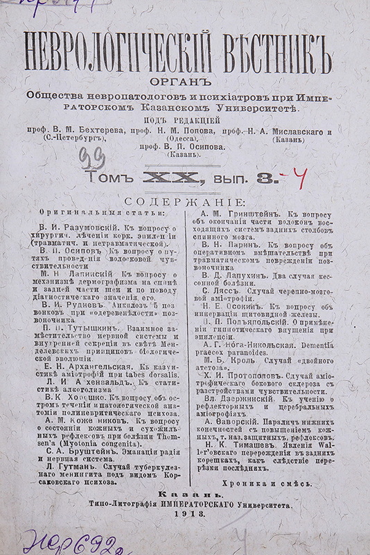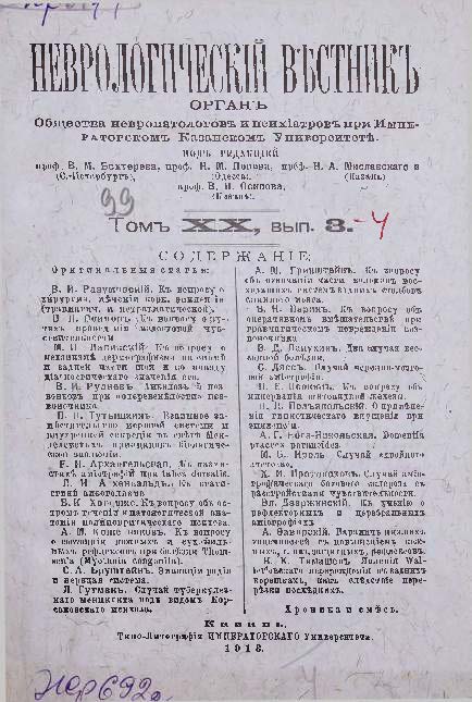 It is not the first time that I have to speak out on the issue of polyneuritis and polyneuritic psychosis. I had to touch on the field of pathological anatomy and ethiology of polyneuritis (bacterium coli), poisoning with carbon dioxide, to touch on the symptomatology of multiple neuritis (the phenomenon of constant hyperkinesis), and its pathogenesis, as well as to try to approach the apparatus experimentally and experimentally with