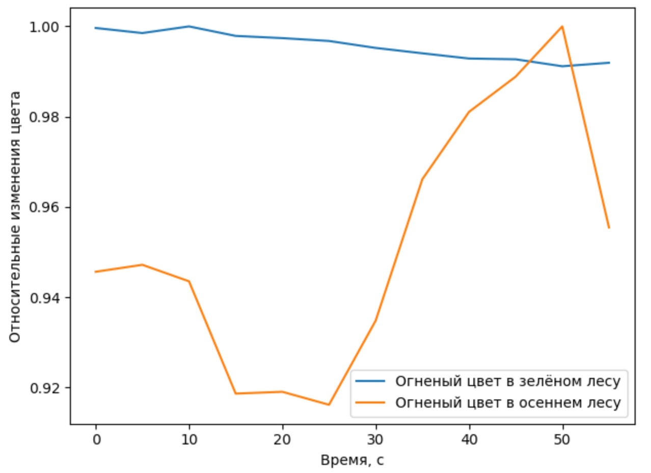 Рис. 1. Относительная динамика изменения «огненных» цветов в лесном массиве