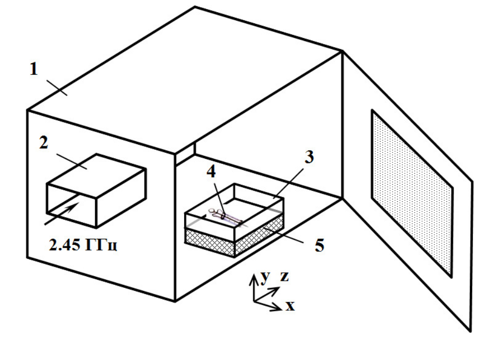 Процессы высокотемпературного воздействия энергией электромагнитных (ЭМ) волн на различные объекты лежат в основе не только терапевтических, но и некоторых вспомогательных медицинских технологий. Одним из примеров таких вспомогательных технологий является стерилизация медицинских инструментов, которая чаще всего проводится путем либо их кипячения в воде традиционными методами, либо обработки горячим воздухом или специальными химическими веществами, что бывает не всегда удобно. При этом продолжительность стерилизации инструментов может оказаться значительной: горячим воздухом – до нескольких десятков минут, в автоклаве при давлении 0,8...3,5 Бар – порядка 15 мин. В ряде случаев, когда важнейшим фактором успешного хирургического вмешательства становится время, ускорить процесс стерилизации позволяет использование для этих целей высокоинтенсивного микроволнового излучения.