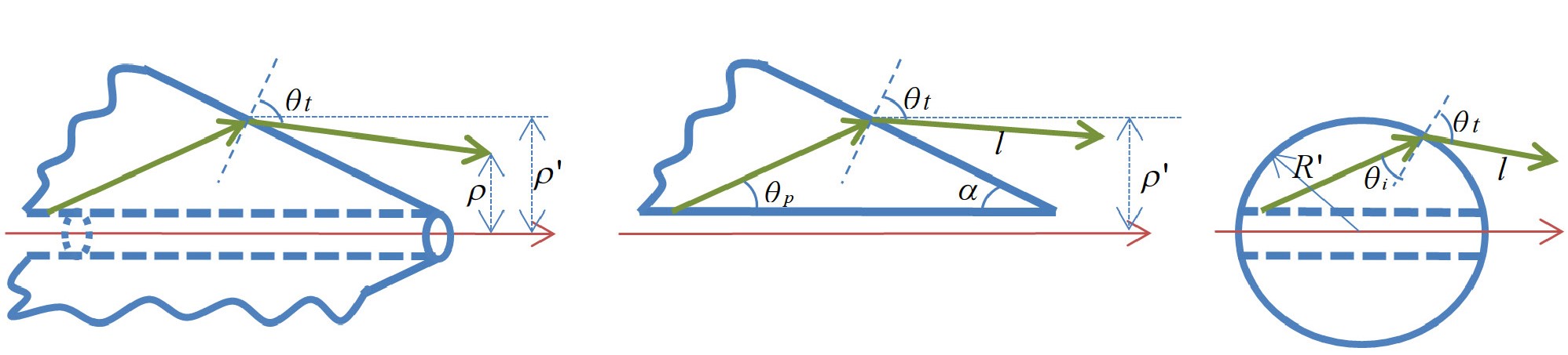 For a sphere (Fig. 4, right), the equation for the ray tube cross section has the following form [12]: