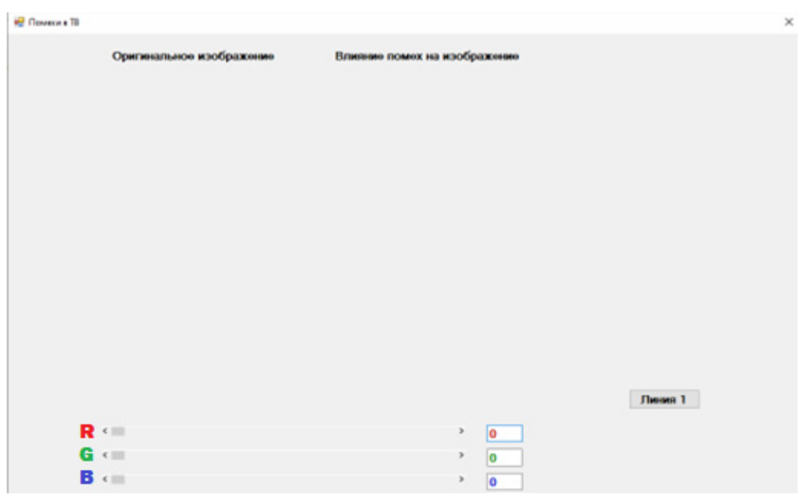 Программа позволяет добавить до 10 линий цветов (рис. 1) для дальнейшего изучения влияния помех на них. Происходит это путем указания координат основных цветов в системе RGB.