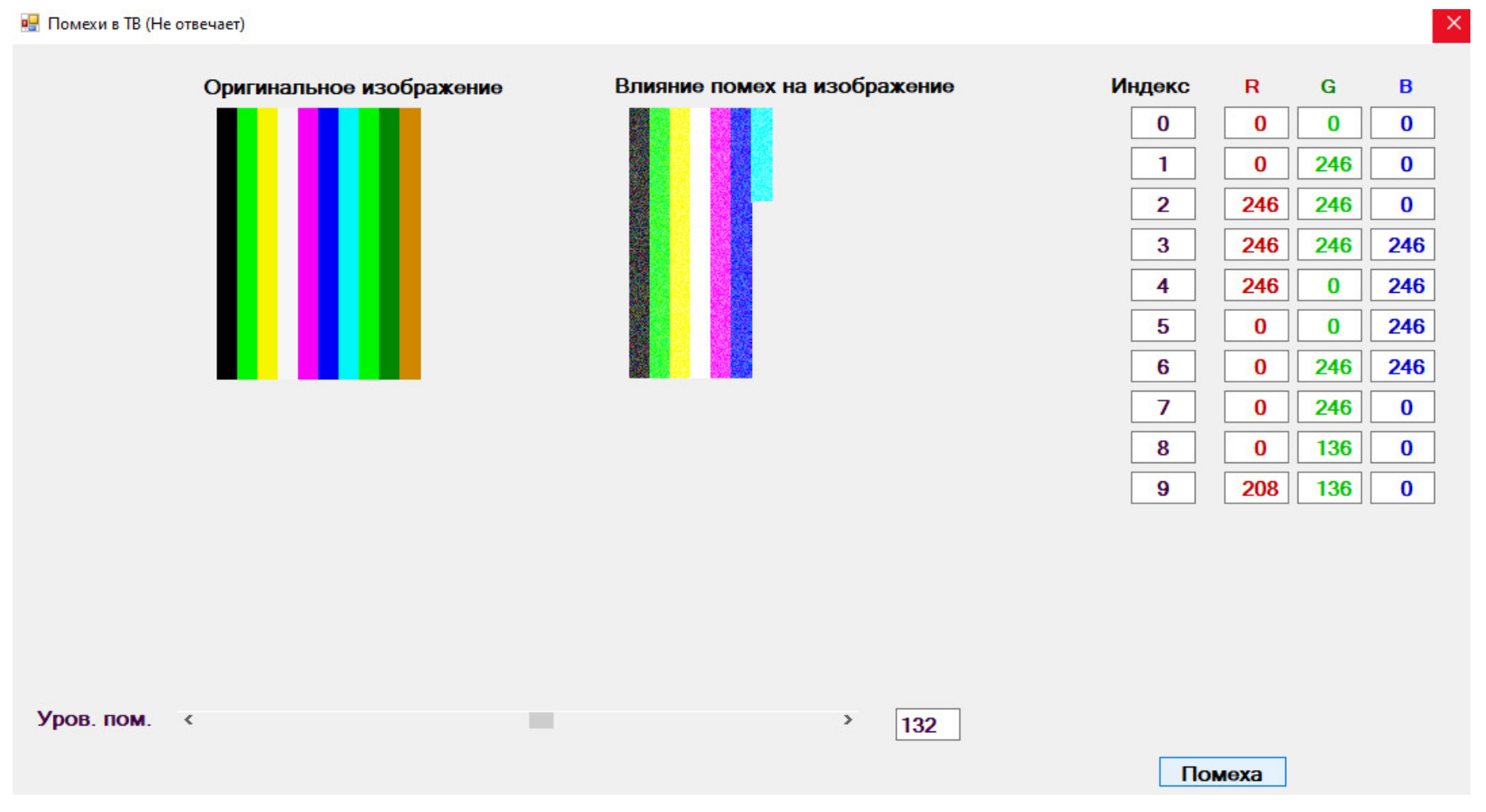 2. Влияния помех на изображения разных цветов