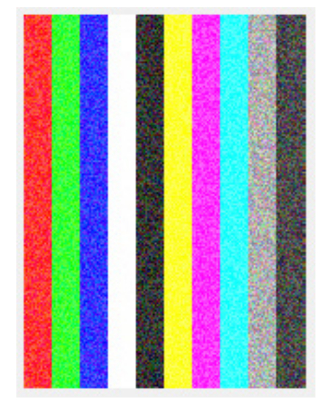 Как видно на рис. 6, изображение красного цвета изменилось в значительной мере, а также влияние помехи теперь можно наблюдать и на зеленом цвете. Белый и желтый цвета в большей степени не искажаются, а все остальные цвета – наоборот, изменяются все больше и больше. Значение сигнал/шум у основных компонент (R, G, B) для каждой цветовой линии имеет 15 % от первоначального (при наличии самой минимальной помехи).