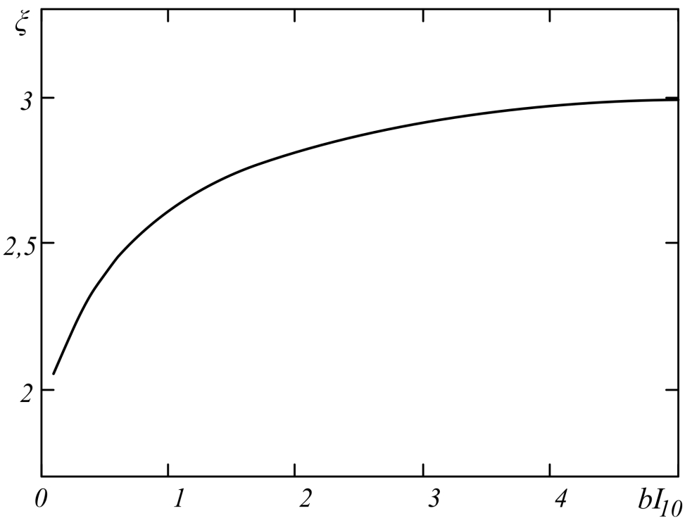 is the absorption coefficient; is the wave number; ω is the cyclic frequency, n0 is the average value of the refractive index; is the temperature change due to the release of heat when absorbing radiation; and b is a parameter characterizing the resonant nonlinearity.