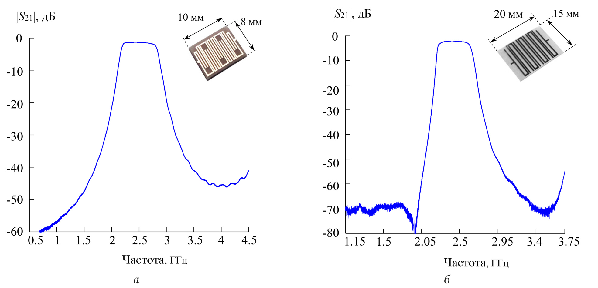 Рассмотренные в работе пассивные полосовые фильтры позволяют реализовать устройства частотной селекции на рабочих частотах до 6 ГГц и выше с учетом современных системных тенденций и требований к устройствам такого типа: