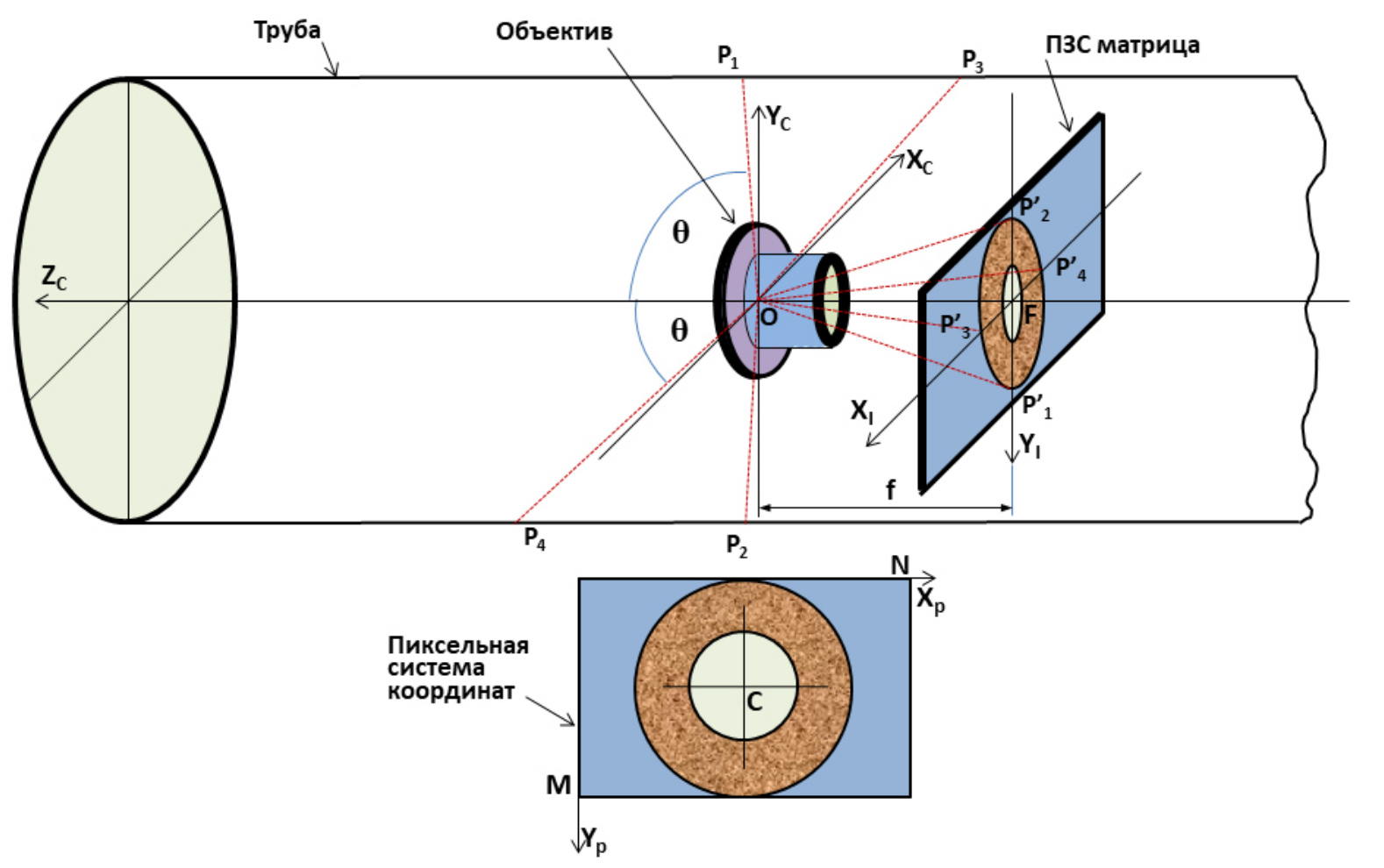 Рис. 1. Модель формирования изображения внутренней поверхности