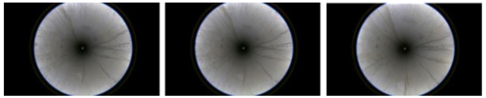 За счет синхронизации затвора камеры с блоком линейного перемещения формирование кадров происходит с фиксированным шагом, который выбирается из условий частичного перекрытия соседних кадров, что необходимо для формирования общей панорамы внутренней поверхности. Кадры видеопоследовательности представляют собой круговые изображения объектов, которые попадают в полусферу поля зрения камеры с разрешением 1980 × 1200 px (см. рис. 2).