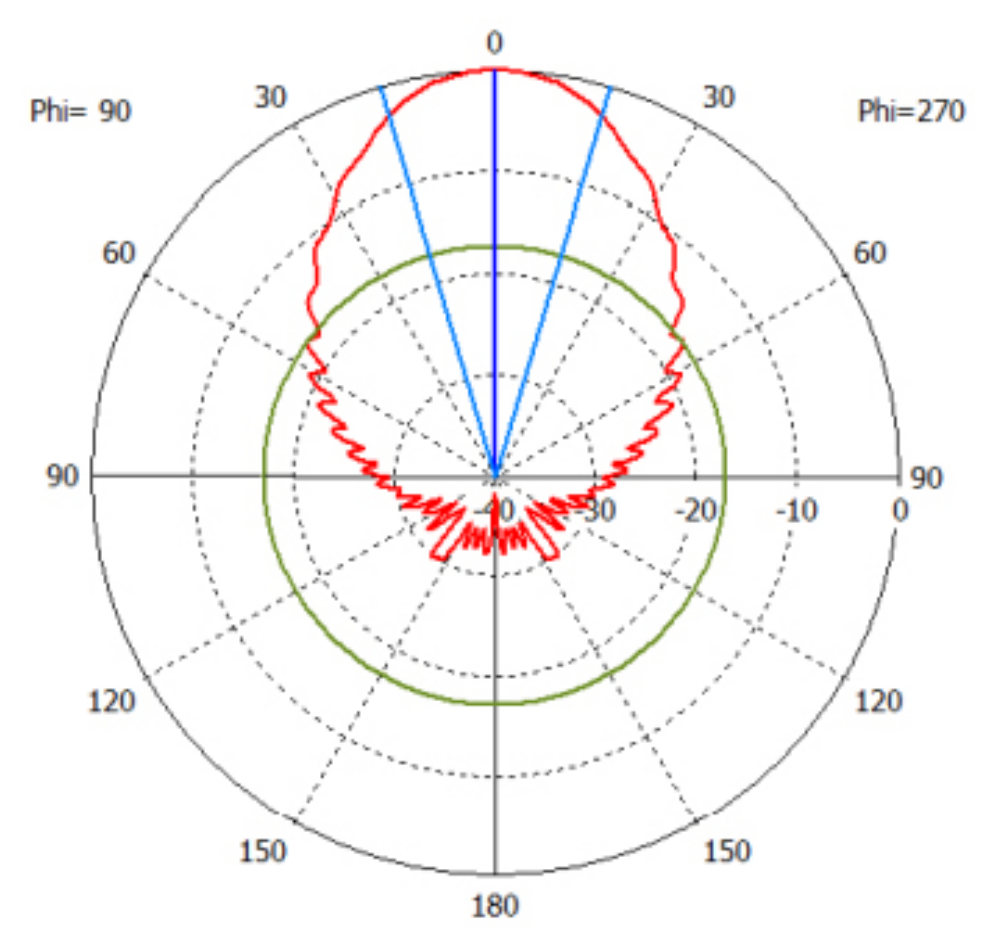 В качестве облучателя комбинированной АФС предлагается использовать открытый конец СРМВ как наиболее простой в реализации и обладающий приемлемыми характеристиками излучения. Результаты численного моделирования показали, что в E-плоскости ширина ДН облучателя составляет 7,4°, УБЛ ДН – минус 13,2 дБ. В H-плоскости ширина ДН – 20,9°, УБЛ – минус 24,7 дБ [25].