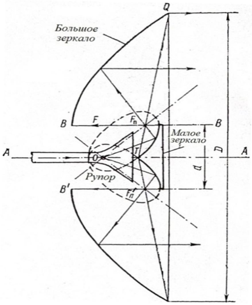 - четко выраженный фазовый центр рупора, который должен совпадать с фокусом O малого зеркала по оси антенны;