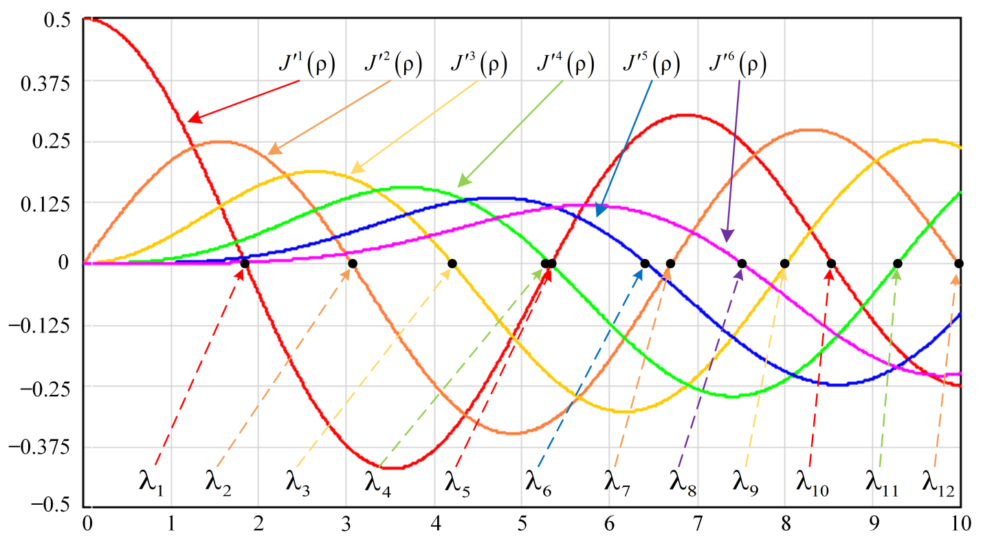 – функции Бесселя перового рода порядка – упорядоченное по возрастанию (рис. 2) множество всех нулей