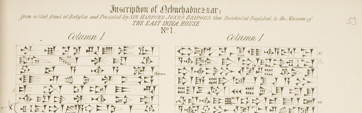 - Ball, Charles James. “Inscriptions of Nebuchadrezzar II. I. The India House Inscription”. Proceedings of the Society of Biblical Archaeology, 1887, vol. 10. London: Society of Biblical Archaeology (in English).