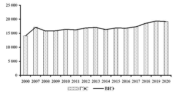 Рис. 7. Динамика выработки энергии из возобновляемых источников (Таджикистан), ГВт/ч