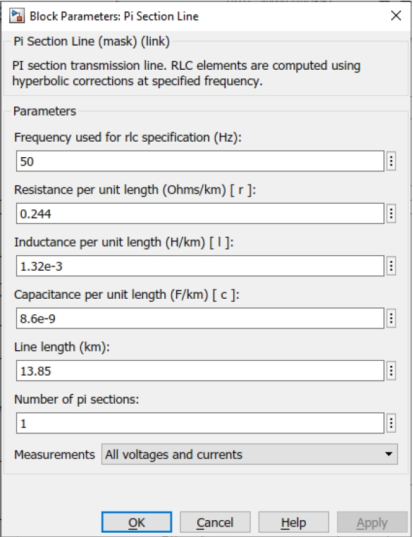 Воздушную линию электропередачи с распределенными параметрами имитирует блок Pi Section Line. Данный блок представляет из себя RLC элемент.