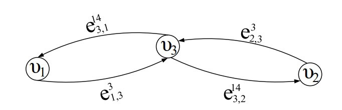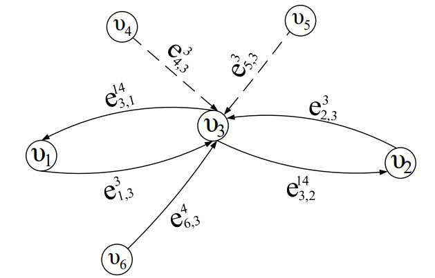 Выделение типов отношений между элементами обуславливает тот факт, что при моделировании ОТС с точки зрения теории конфликтов нашли свое применение знаковые ориентированные взвешенные графы [7], в которых элементам системы соответствуют вершины , а отношениям между каждым -м и -м элементами – дуги . Таким образом, модель некоторого состояния исследуемой системы , в состав которой входит множество элементов , множество воздействий элементов друг на друга , а также множество функций полезности элементов , на основе которых выделяются типы отношений, будет представлена в виде графа , где – множество вершин графа (), – множество дуг графа (), – множество весовых коэффициентов влияний, присваиваемых дугам, где ; – множество знаков дуг графа, задаваемых на основе выделенных типов отношений в соответствии со следующими условиями: