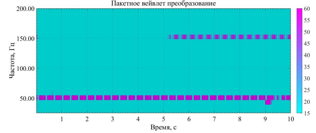 Для ряда задач электроэнергетики наиболее перспективным является пакетное вейвлет-преобразование. Результат пакетного вейвлет-преобразования сигнала тока i(t) представлен на рисунке 4.