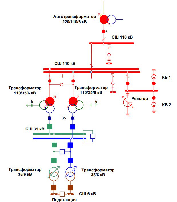 Численный эксперимент будет проводиться для электрической сети 110/35/6 кВ, представленной на рисунке 5.