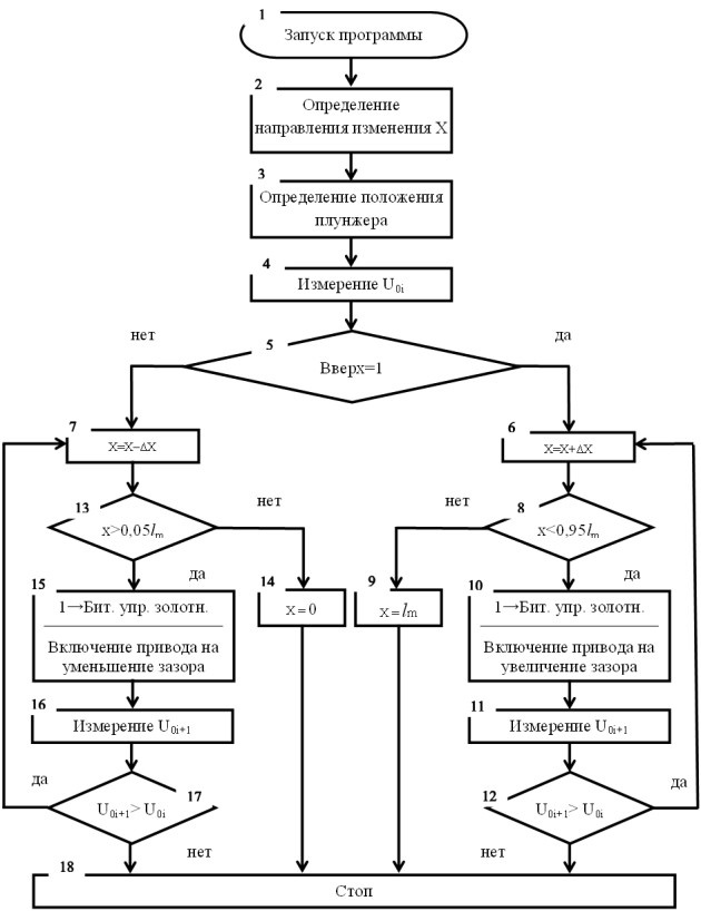 Рисунок 3 – Блок-схема алгоритма системы управления ДГР по экстремальному методу