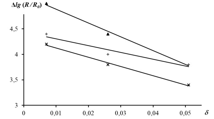 - для V2-δCr0,02O3: ∆lg(R/R0) = 5,7 – 27,3·δ.
