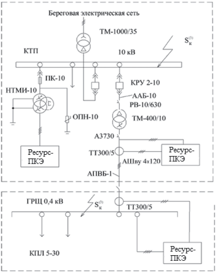 Электроснабжение береговых объектов (портов, нефтебаз, судоремонтных заводов, транспортных терминалов по переработке грузов совместно с железнодорожным транспортом) осуществляется в основном от региональных электроэнергетических систем (ЭЭС). В береговых сетях (6–10) кВ объектов водного транспорта, характеризующихся небольшими мощностями трёхфазного короткого замыкания (КЗ), обостряется проблема электромагнитной совместимости (ЭМС) из-за качественных изменений нагрузок в электрических сетях общего назначения, появляются кондуктивные электромагнитные помехи (ЭМП). Так, в сетях Западной Сибири произошло увеличение доли нелинейных нагрузок тяговых подстанций железнодорожного транспорта и нефтегазодобывающих месторождений [2–5].