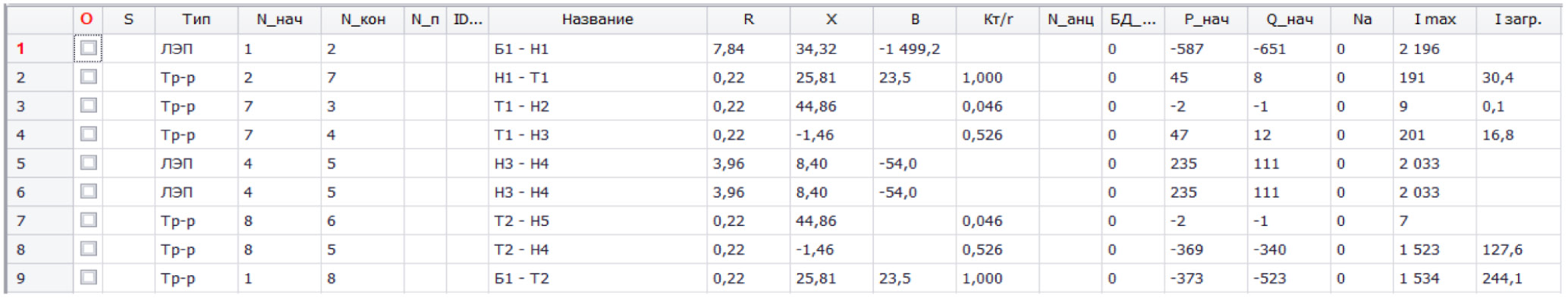 Полученные величины перетоков активной мощности в контролируемом сечении запишем в таблицу 2.